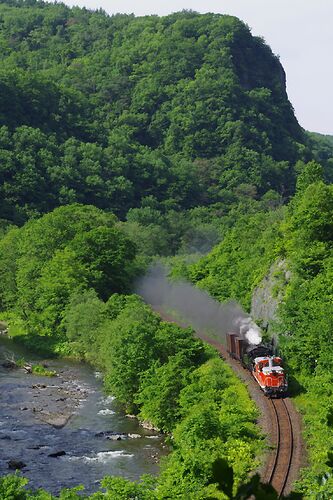 今日は石北マヤ(回送)の日、旭川での仕事ついでという汽憶氏、関東からわざわざおいでのチトさまと奥白滝高速俯瞰にチャレンジしようという話になりました。アメダス実況は日照を伝えるものの上川側は曇っており浮島付近はかなりの霧。「本当に晴れてるのか…